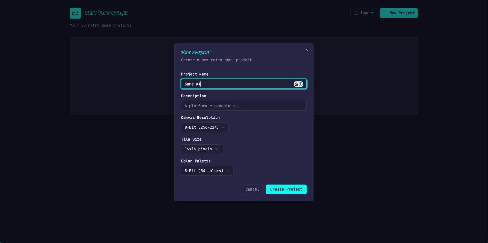 RetroForge is a web-based creative studio for designing and building 2D retro-style video games. It combines the nostalgic charm of classic 8-bit and 16-bit game aesthetics with modern, intuitive editing tools—enabling anyone from hobbyist creators to indie developers to bring their game ideas to life without writing traditional code.