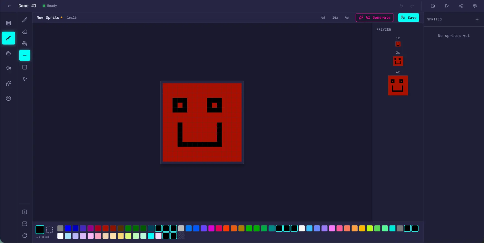 在编辑器中工作时,新运行相较于单独运行的优势变得更加明显。精灵编辑器更丰富、功能更全,具有更干净的工具调色板、更好的颜色选择器以及更实用的缩放控制。